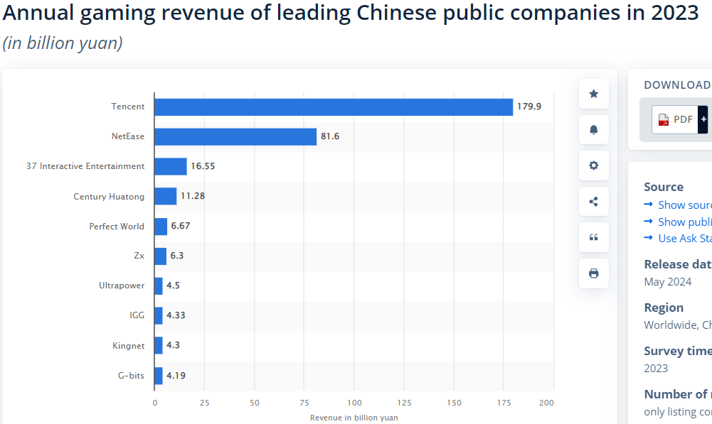 A quick search shows that Tencent and NetEase are still the big boys in this arena but who knows… the next game can literally changes everything…