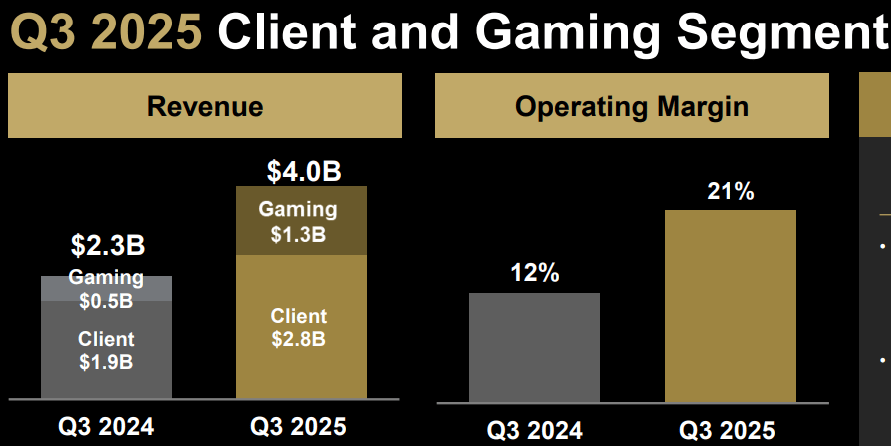 Even with its core business of data centres, AMD does have other business segments that are delivering rapid growth for the company.