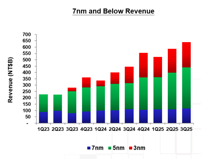 The 3nm (most advanced currently) and 5nm technology for semiconductors is making up a bigger portion of its revenue.