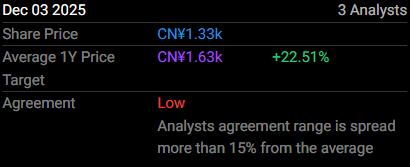 According to the market, Cambricon has a target price CN$1,630 with an implied upside of +22.5%.