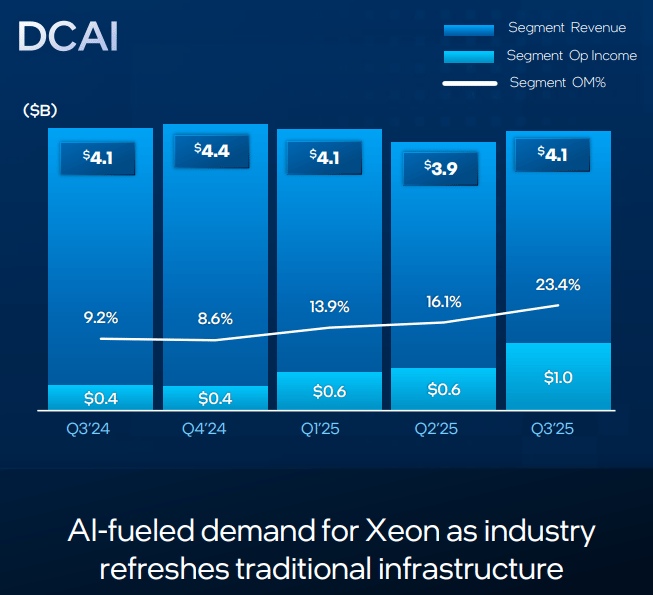 Intel’s data centre segment’s revenue was flat for 3Q 2025 (9M 2025 growth was 3.4%), but delivered double the profits at US$1.0 billion.