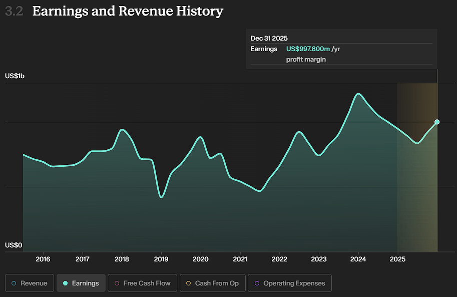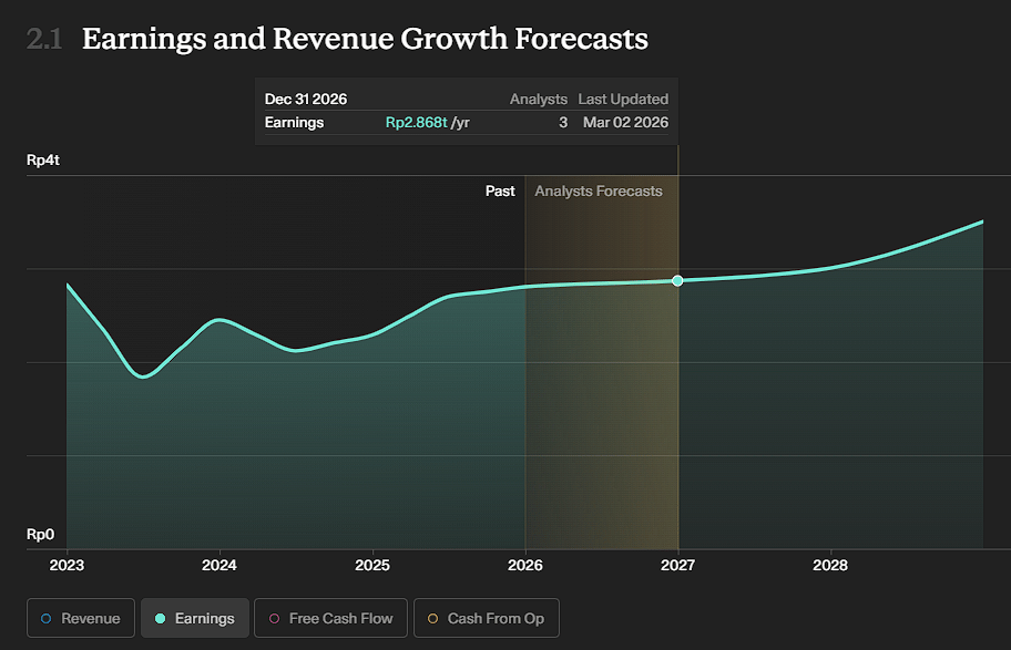 For 2026, earnings are projected to grow by 15.8%, a normalisation from its high growth. In terms of valuation, DCF indicates that the company is undervalued by 63%.
