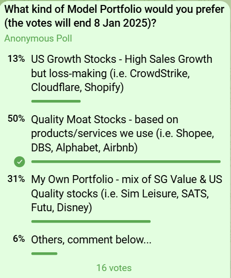 The majority have spoken and we will go for the βQuality Moat Stocksβ model portfolio going forward!